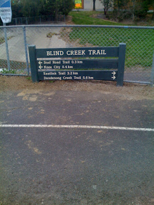 I thought I would post a gallery of the new Blind Creek Trail directional signage I spotted on a recent bike ride through Knox. When I rode on October 19, new signs had been installed between EastLink and Lewis Park (the park at the back of Knox City Shopping Centre), so hopefully more have been placed along the trail since that ride. The signage is of high quality wood, and the destinations are adequate for the trail, but could be better. I will review each sign and it's location under each of the following photos: